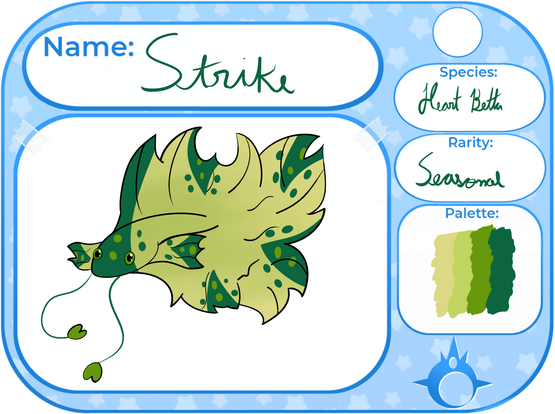 This character does not have a baby application uploaded. Please keep in mind that for some activities, like growing up or breeding (regardless on whether an adult application is uploaded), a baby application will be required.