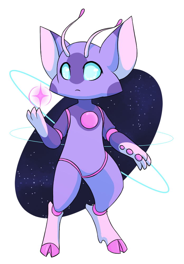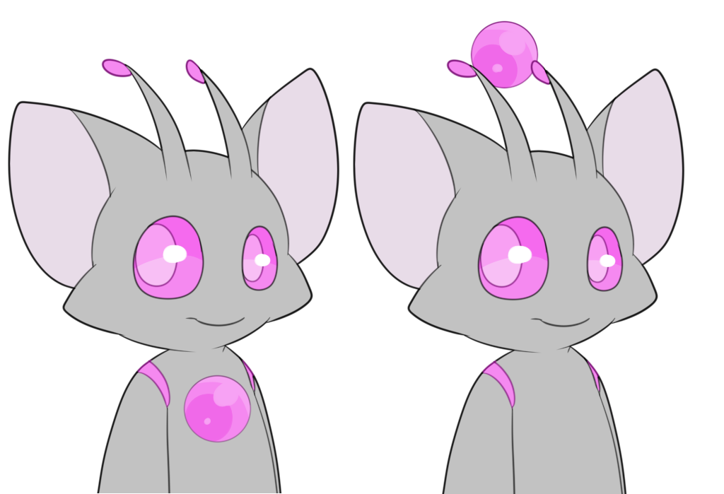 As opposed to the eye bumps that standard Astralit have, Space Debris Astralit have antennae instead. These antennae start off as small horns as babies, and grow to their full length as adults! These antennae are no longer than the Astralit’s ears and have a small tip of a teardrop shape. This tip can be one of the two additional colors chosen in the MYO process and the stalk takes one of the colors of the Astralit’s pelt.