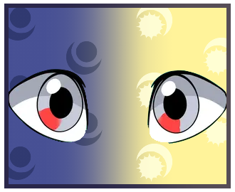 Application: Add a colored splotch or a shape to either one (1) or both of your character's eyes. The design should match relatively to the examples found HERE. The Oddball shape MUST be inside the iris. It can be anywhere within the iris so long as it doesn't overlap the sclera/pupil. The Oddball shape may be any color of your choice EXCEPT pure black or pure white.